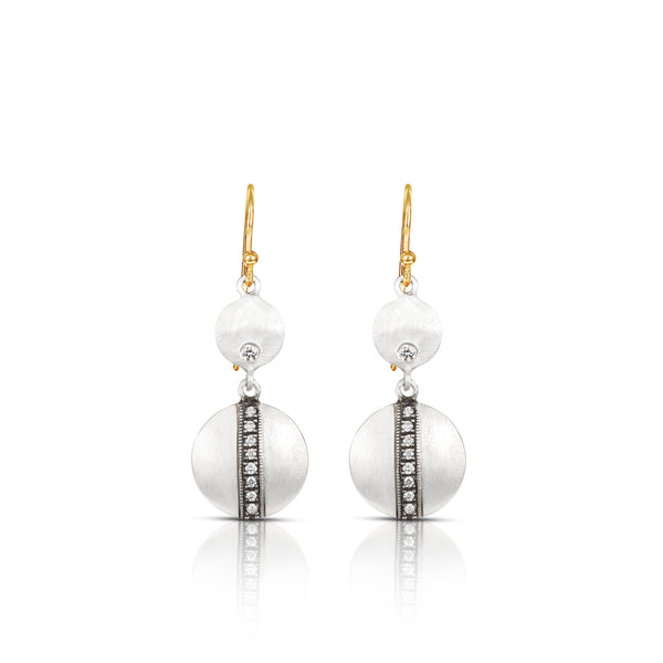 Small Double Vintage Finish Sterling Silver Earring with White Diamonds 0.20cts on 14K gold Ear wire. This is also available as Post earring